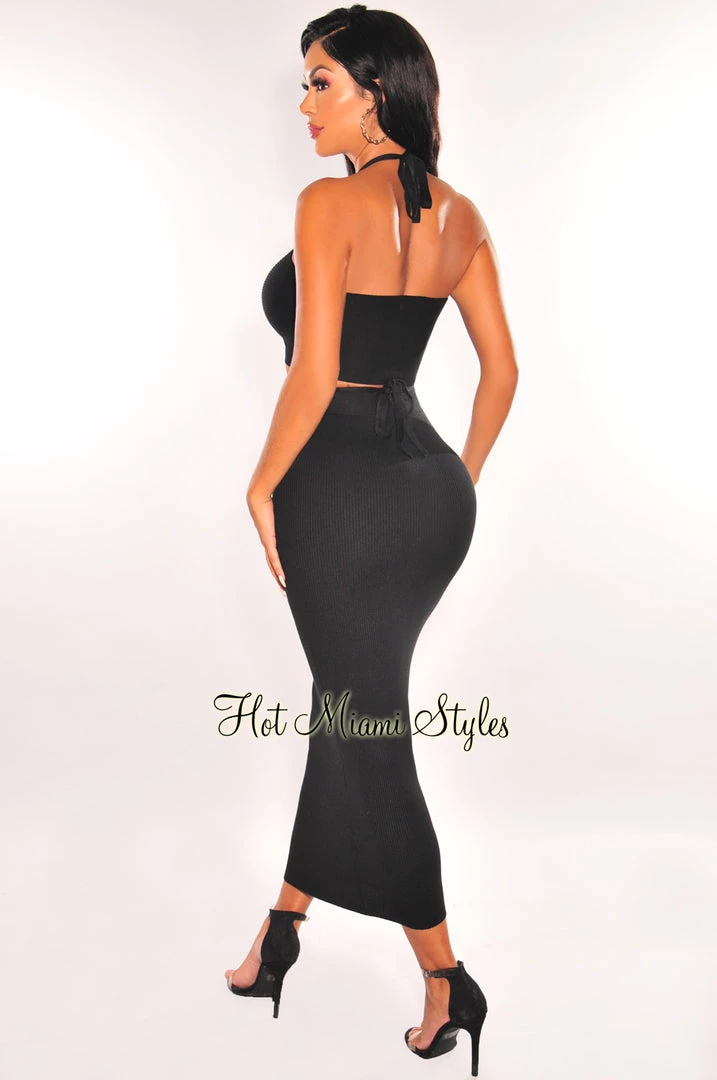 Earn some some serious style points and get ready for the weekend with this must-have two piece set. Featuring an ultra stretchy body hugging ribbed knit fabric top and matching skirt.Â