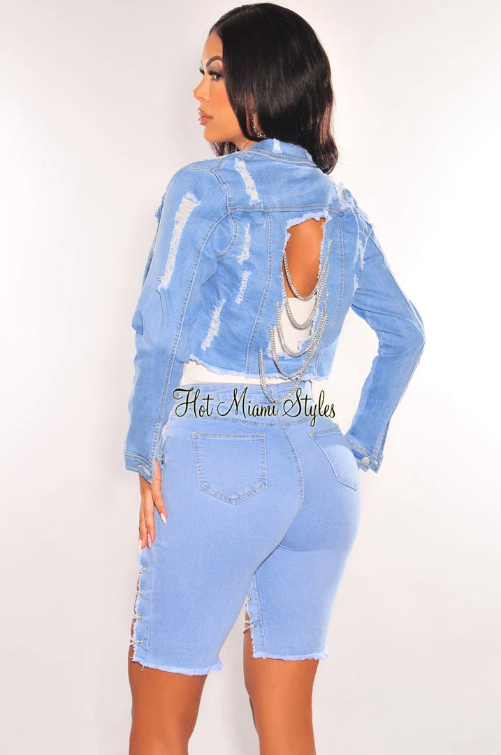 An essential wardrobe must-have! Made with destroyed details, silver chains and cut out back for the ultimate on point look.Â