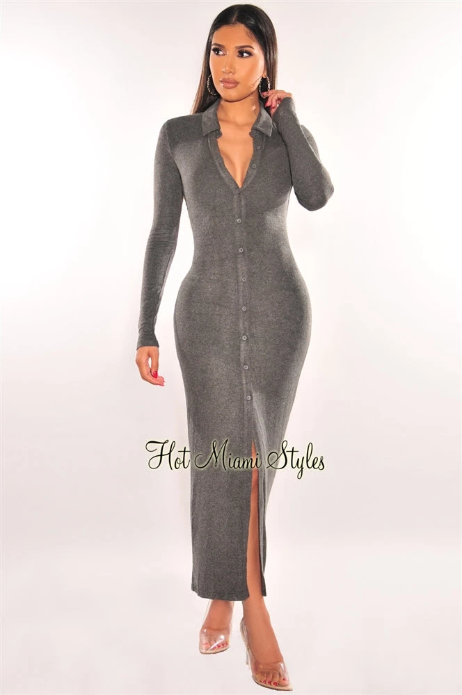 Elevate your wardrobe with this knit dress. Features a collared neckline, button up detail and cut out back on the perfect ultra soft body hugging bodice.