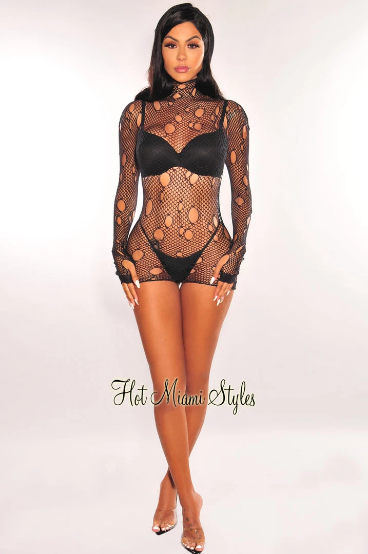 Take your lingerie collection to a whole new level with this dress. Featuring a one piece fishnet bodystocking with big hole designs and hoodie. Thong and bra not included.
