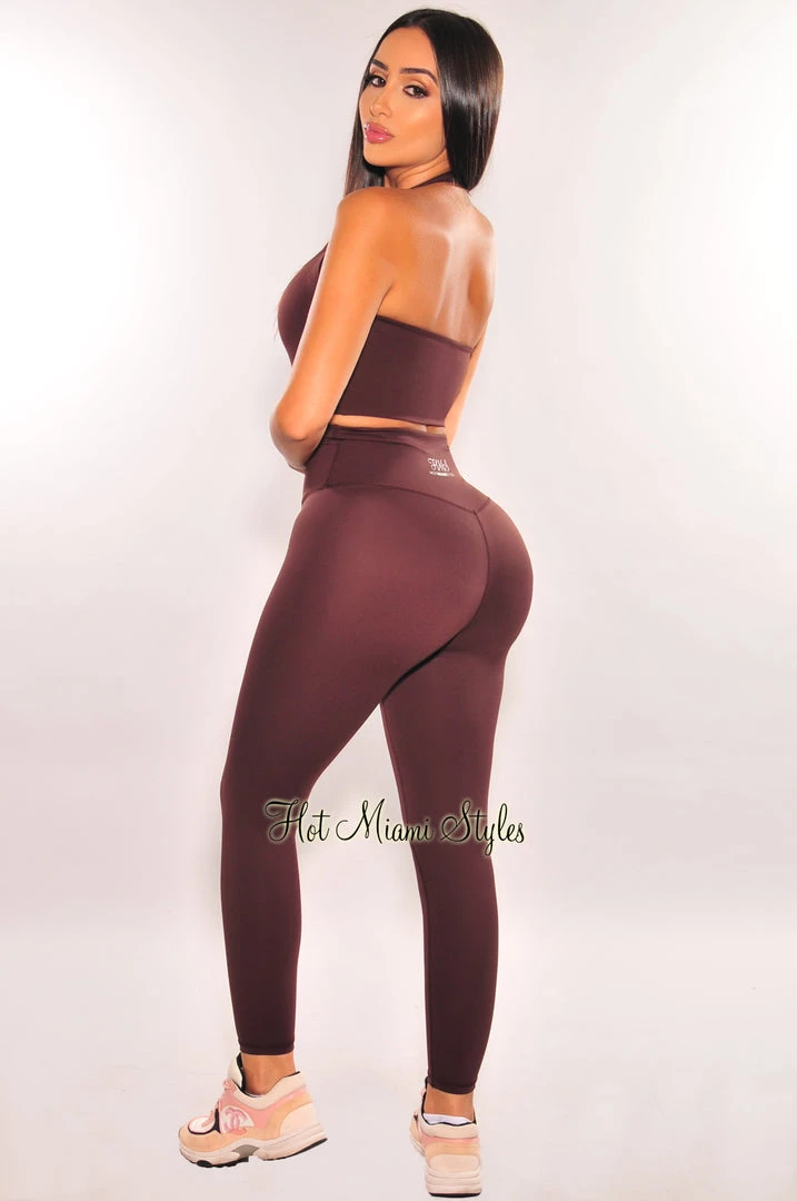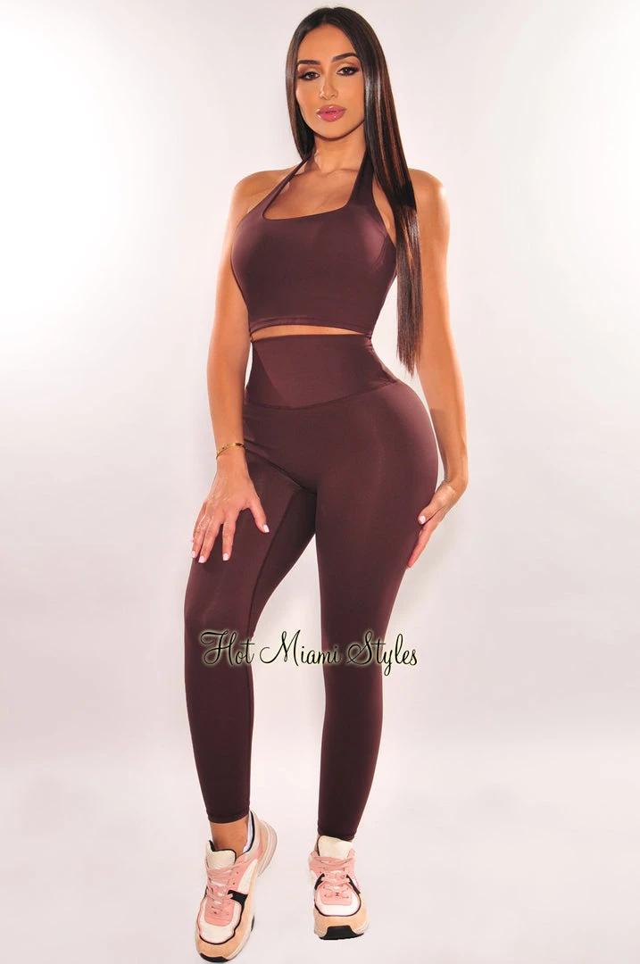 HMS Fit: Designed to fit like a glove and enhance your assets. This two piece set is made of ultra stretchy fabric for a flattering fit. Top features a padded halter design and matching high waist leggings.