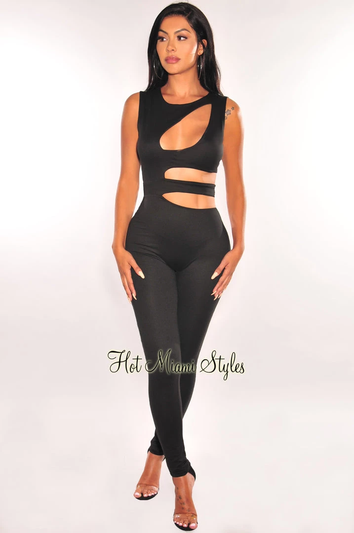 Add some chic, feminine feels to your weekend wardrobe with this black jumpsuit. Featuring a curve hugging stretchy fabric with keyhole and cut out design.Â