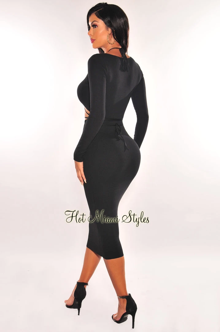 Delivery chic vibes in this beautiful ribbed knit dress. Featuring a keyhole cut out design with long sleeves on a midi silhouette.