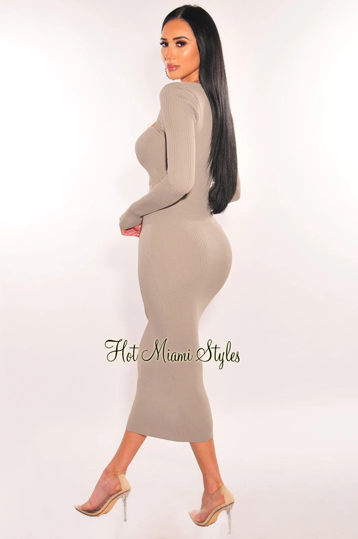 Hug and shape your body in this dress. Made of a stretchy ribbed fabric, cut out detail and long sleeves.