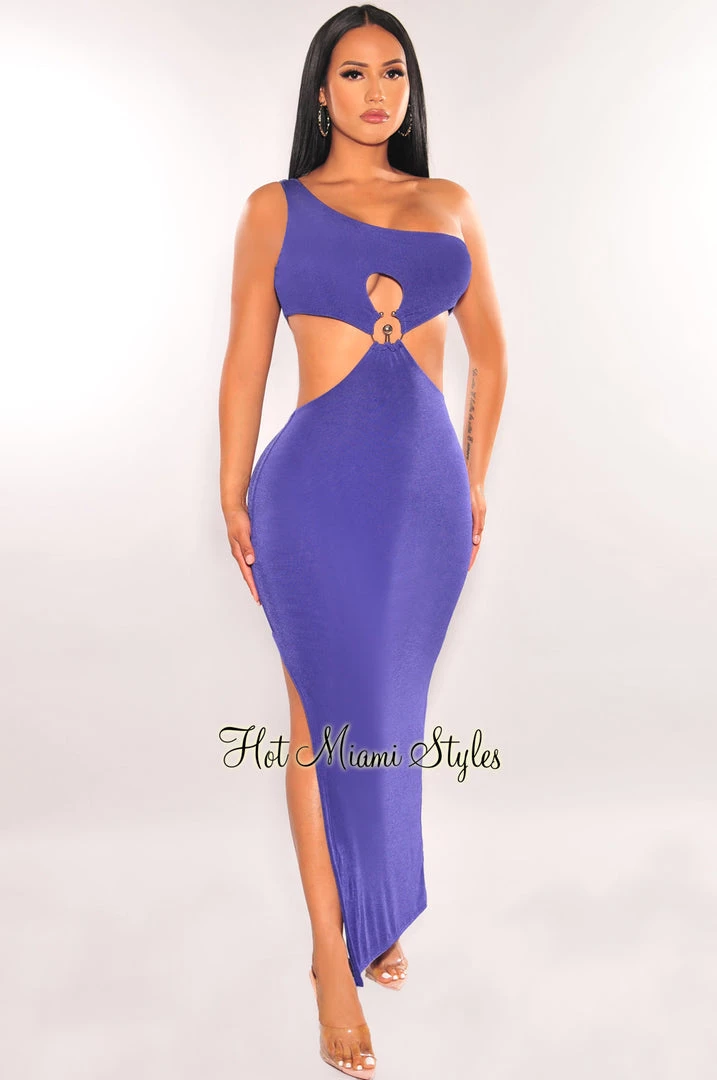 Make nothing but a statement with this unreal dress doll. Featuring one shoulder neckline, shimmery bodice with O-ring and cut out design. This maxi dress is everything you need and more.Â