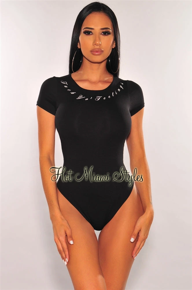 Make a statement when you show up in our black bodysuit, made with ultra soft stretchy fabric and short sleeves. Featuring graphic text that reads “Fuck Yo’ Feelings”.