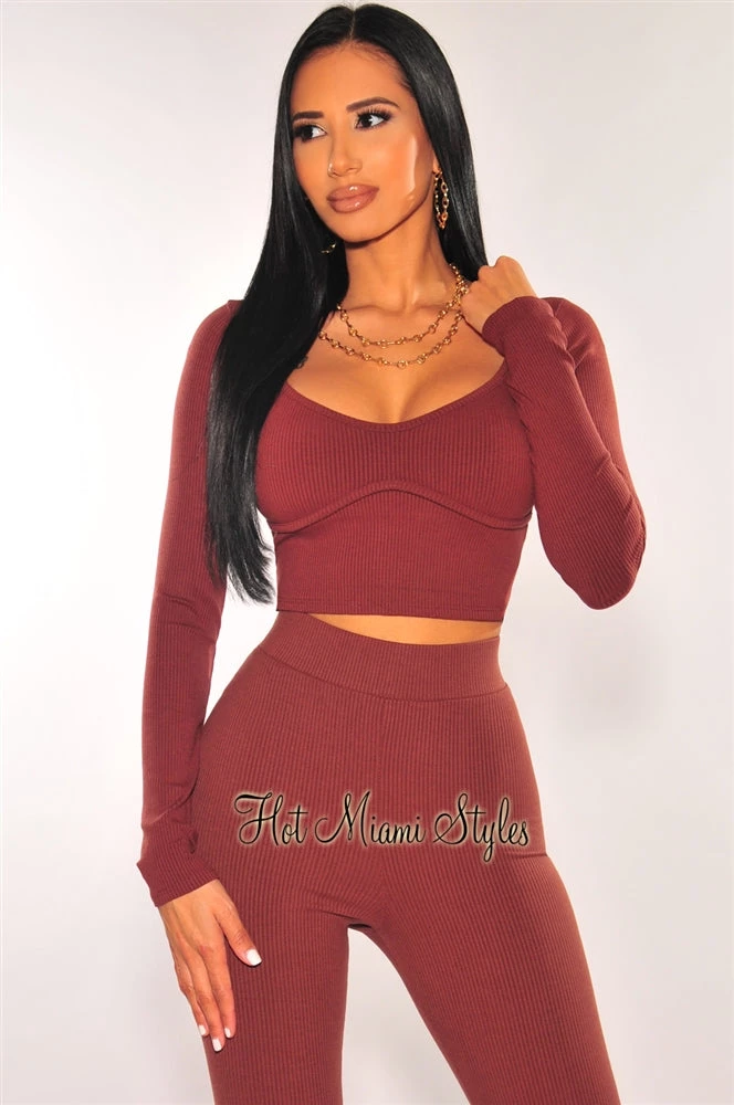 Deliver stylish vibes in this gray ribbed knit crop top featuring a faux bustier detail and long sleeves.