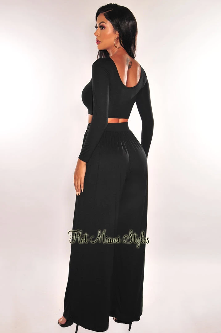 GOODTIME USA Black Round Neck Long Sleeve Palazzo Pant Two Piece Set