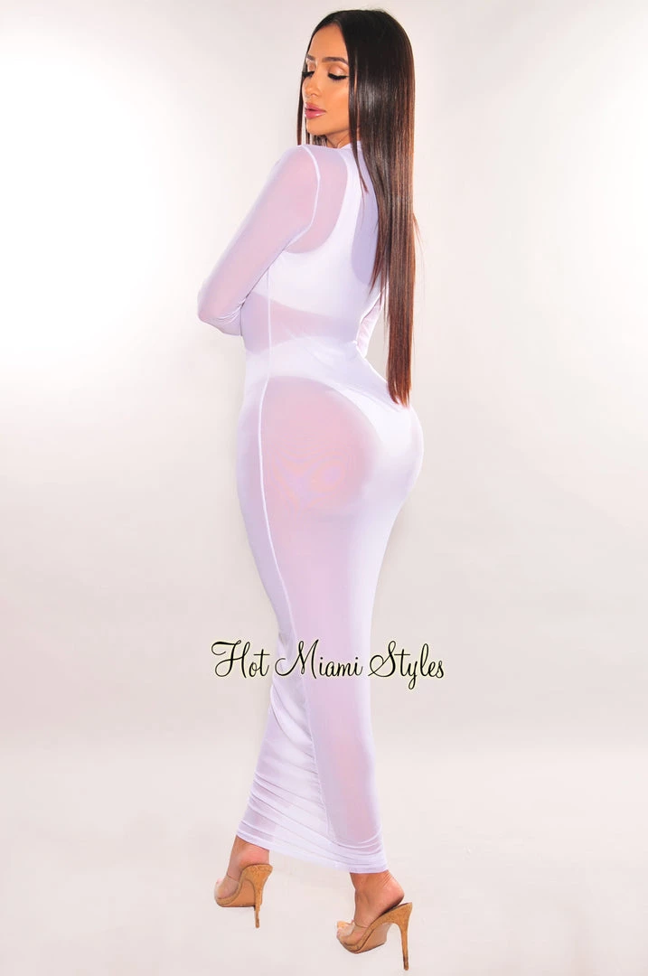 Allure them from the beach to VIP club line, this white sheer mesh long sleeves dress is irresistible all around. It’s sheer cover up look gives your getaway wardrobe everything you’ve been searching for.Â