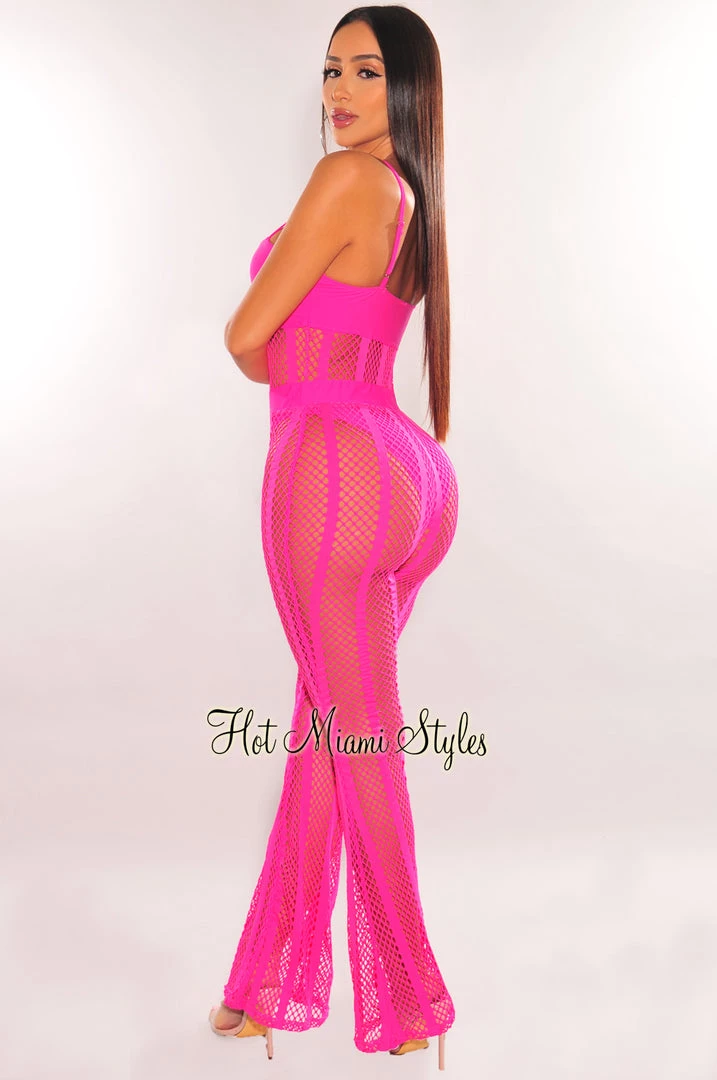 Make an unforgettable entrance in this show stopping two piece set. Features a fishnet bodysuit and matching high waist palazzo pants.