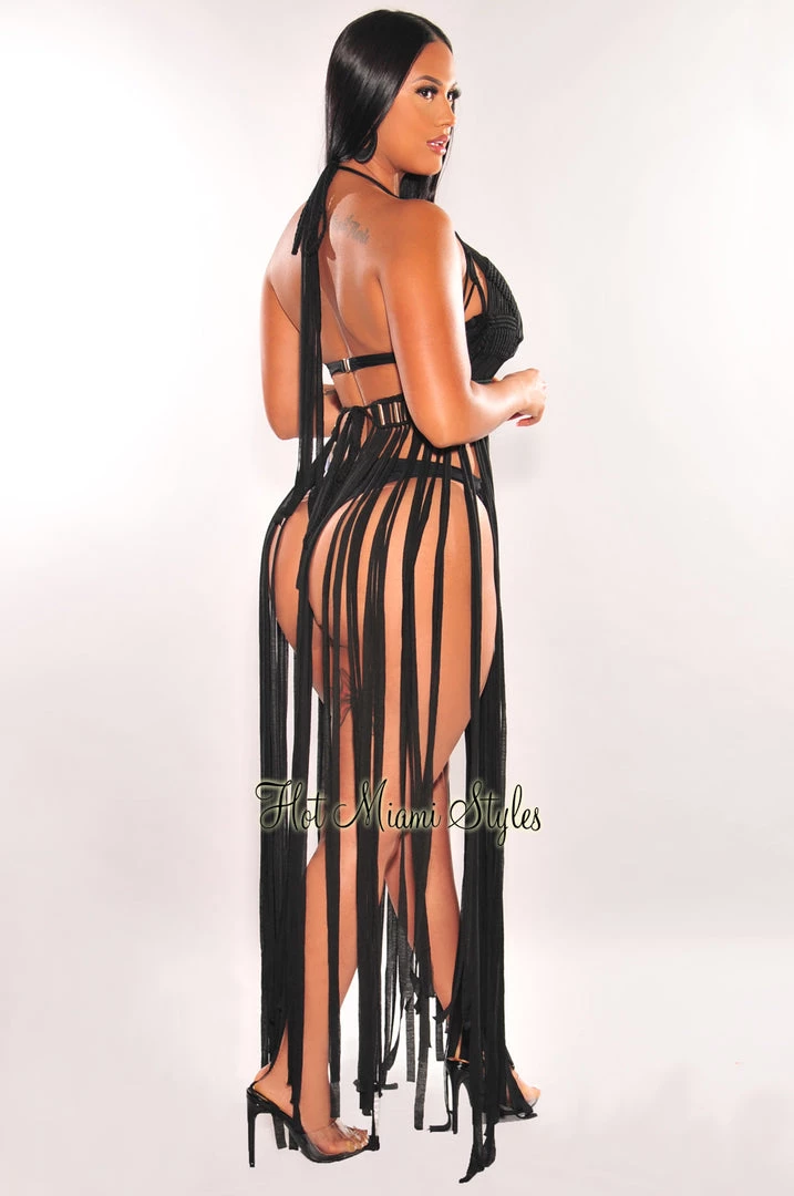 This crochet fringe cover up is everything we are currently loving with a gorgeous open back and tie up detail. Pair with your favorite HMS swimwear.