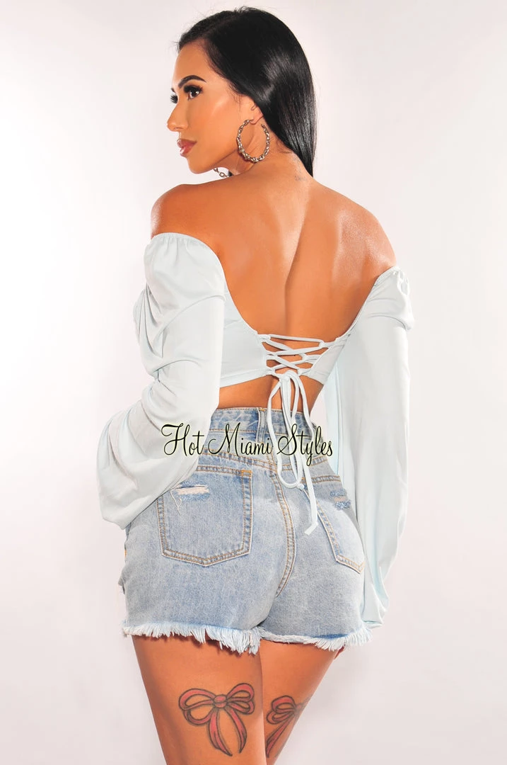 We are loving this new spring wardrobe staple. Featuring an appealing lace up back design on a long sleeve bustier style crop top.