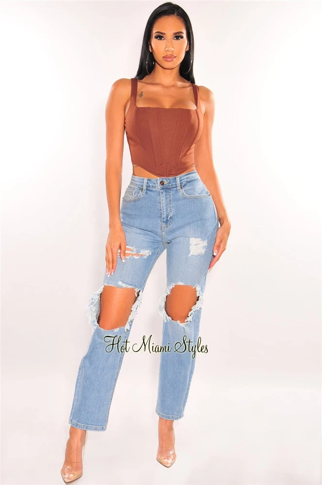 This cute little top is perfect for your favorite looks with its bustier-style details on a sleeveless top. Made with supportive boning all around, featuring a V hem cut design.