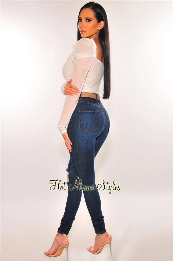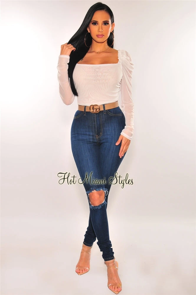 This white sheer mesh bodysuit will have you feeling yourself. Features a sheer bodice babe, and an all over ruched design with long sleeves to complete the looks with your favorite bottoms.
