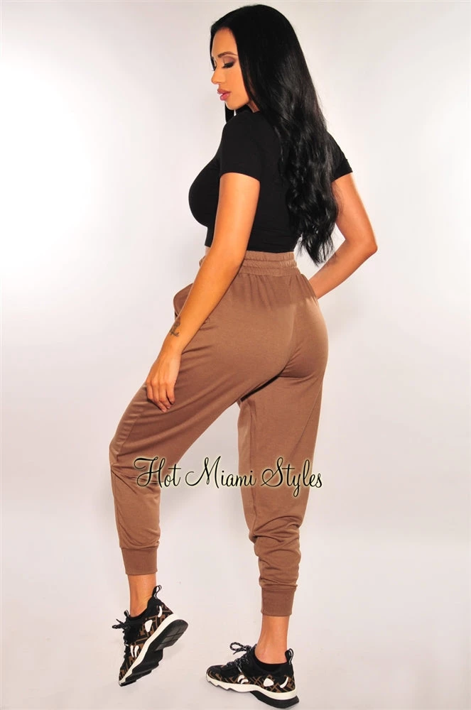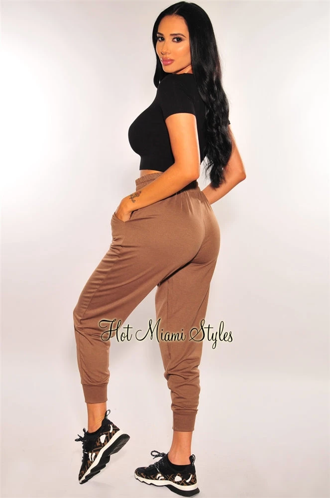 Dress it up or down, these joggers will become your go-to for lounge wear and beyond. Pair with your favorite bodysuit, or lounge with our matching cropped sweatshirt. Features a high waist, side pockets, adjustable drawstring and made of ultra soft and comfy fabric.