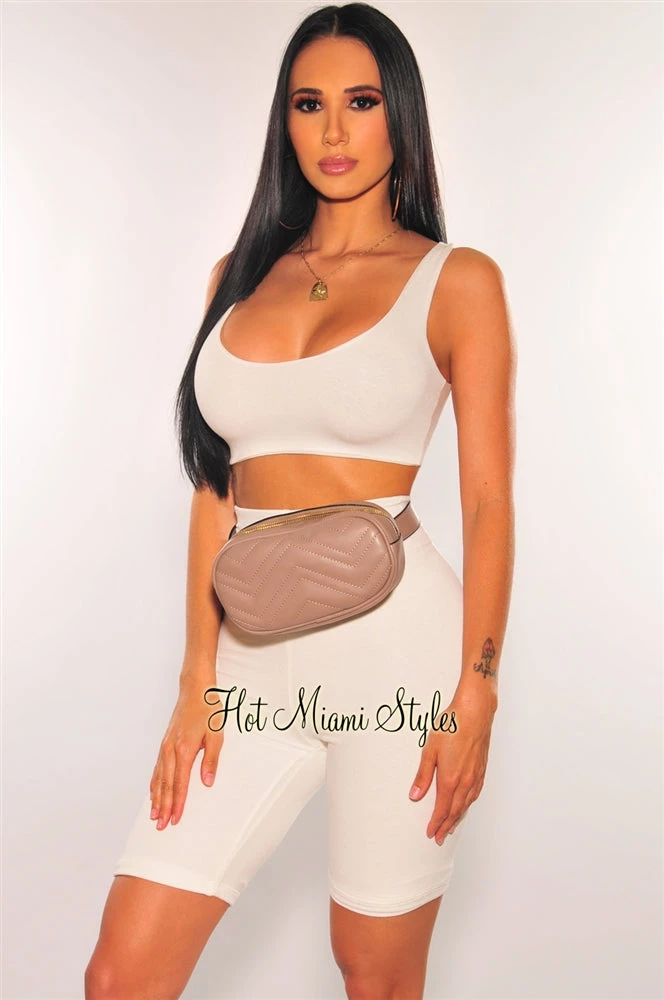 All the comfy feels in this white biker shorts set. Features a cropped tank style and matching high waist biker shorts. Made of stretchy double-layered fabric made to give shape and support to your body.
