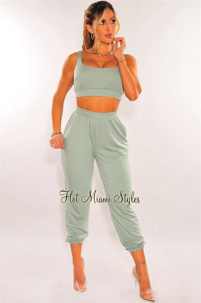 Sole Mio (set) HMS Lounge: Sage Cropped Tank Joggers Two Piece Set Just In