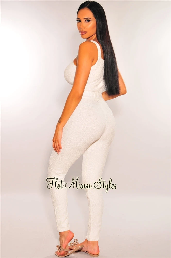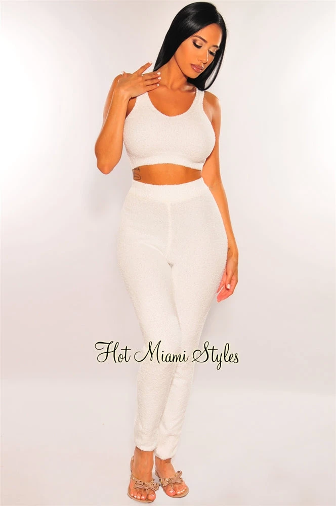 Sole Mio (set) Just In HMS Lounge: Off White Fuzzy Tank High Waist Jogger Pants Two Piece Set