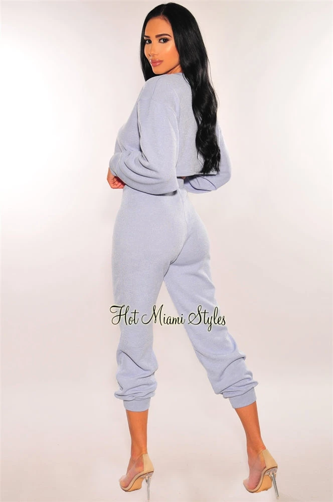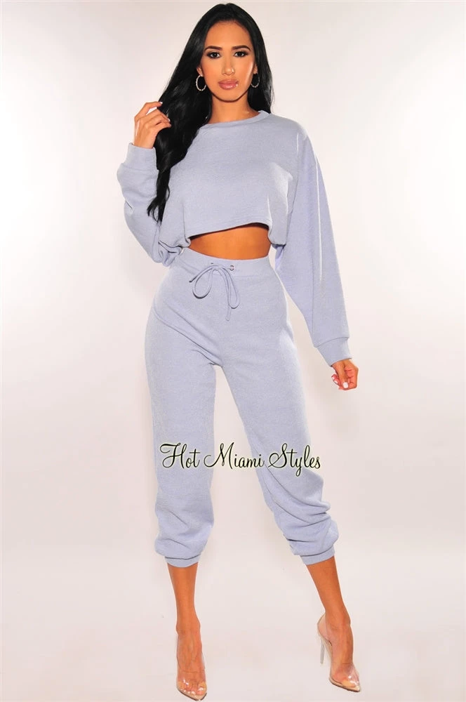 We are leveling up your essential wear! Featuring a long sleeve cropped top with a loose fit and matching high waisted jogger pants to complete the look.