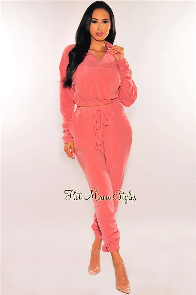 We can’t get enough of the cute lounge wear! Featuring a long sleeve mock neck zipper sweater top and matching high waisted jogger pants to complete the look.