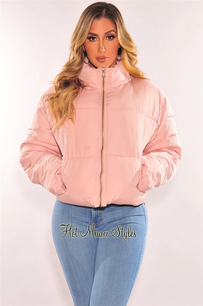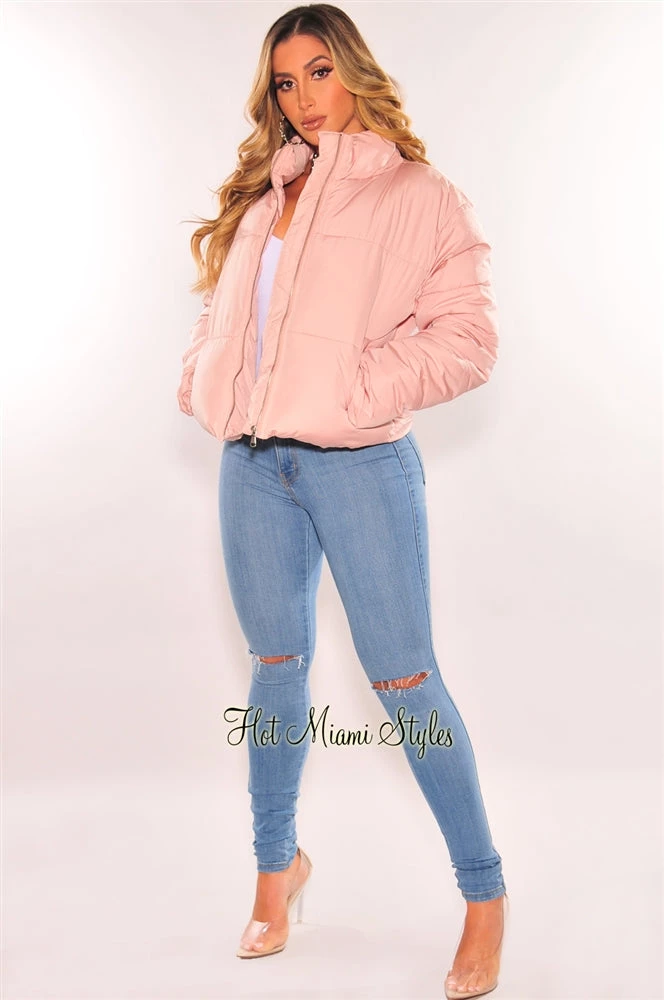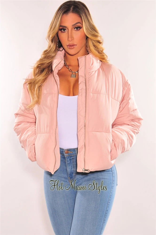 The perfect puffer bomber jacket for your favorite seasonal looks! Featuring a warm double layer puffy bodice on a zipper up jacket with an adjustable elastic string at back for that sexy snatch waist look.