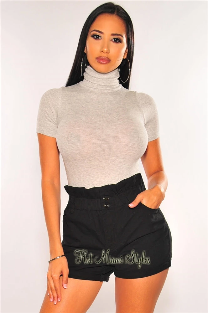 These black paper-bag shorts will snatch your waist! Features a high waist, double button closure and a cuffed hem.