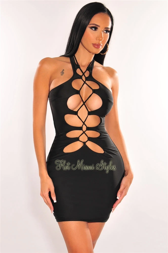 Sexy is an understatement! Featuring a sultry halter lace up detail on a perfect mini dress to hug your curves.