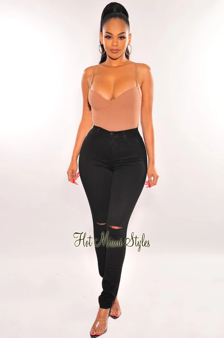 must-have! These fitted jeans fit like second skin and feature a high waist and ripped knee detail.