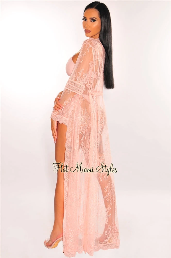 The perfect layering piece for all the swimwear looks, this tie up cover up is everything we are currently loving with a maxi length and a beautiful floral lace crochet detailed design.