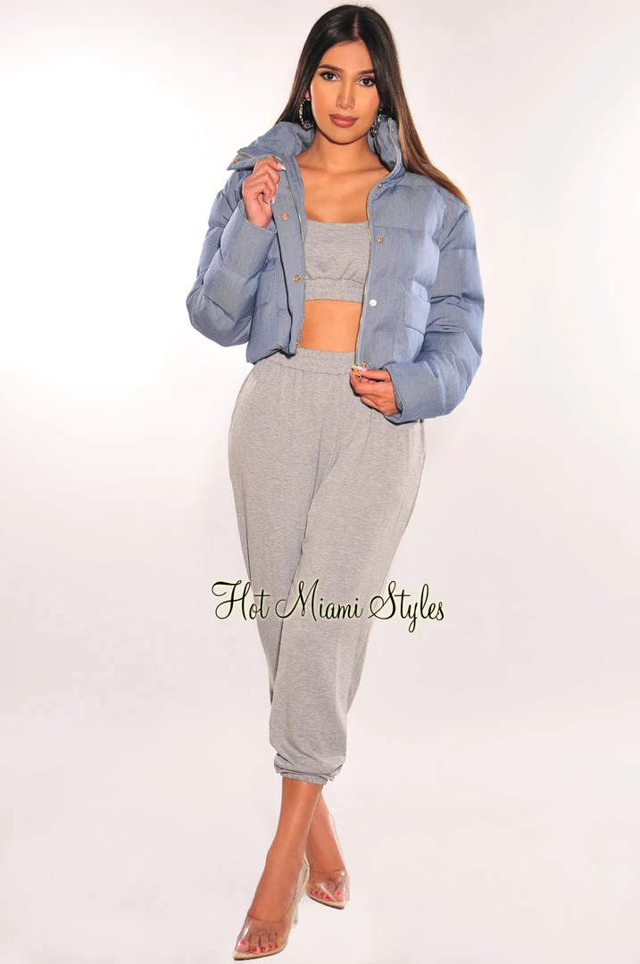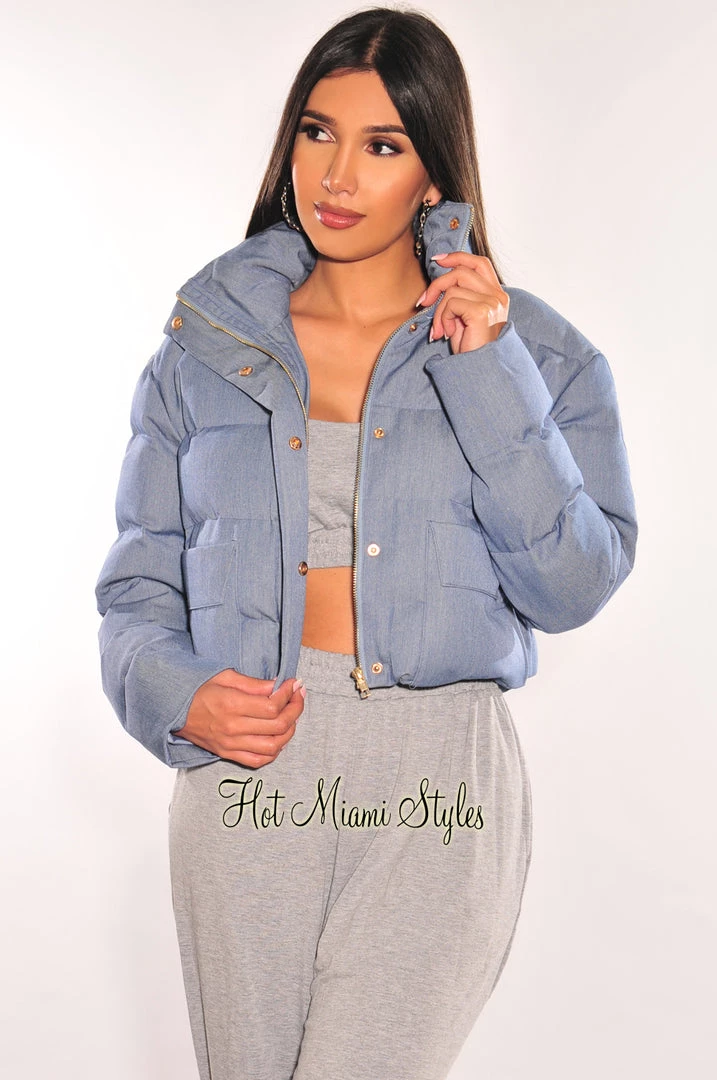 The perfect puffer bomber jacket for your favorite seasonal looks! Featuring a warm double layer puffy bodice on a button zipper up jacket.