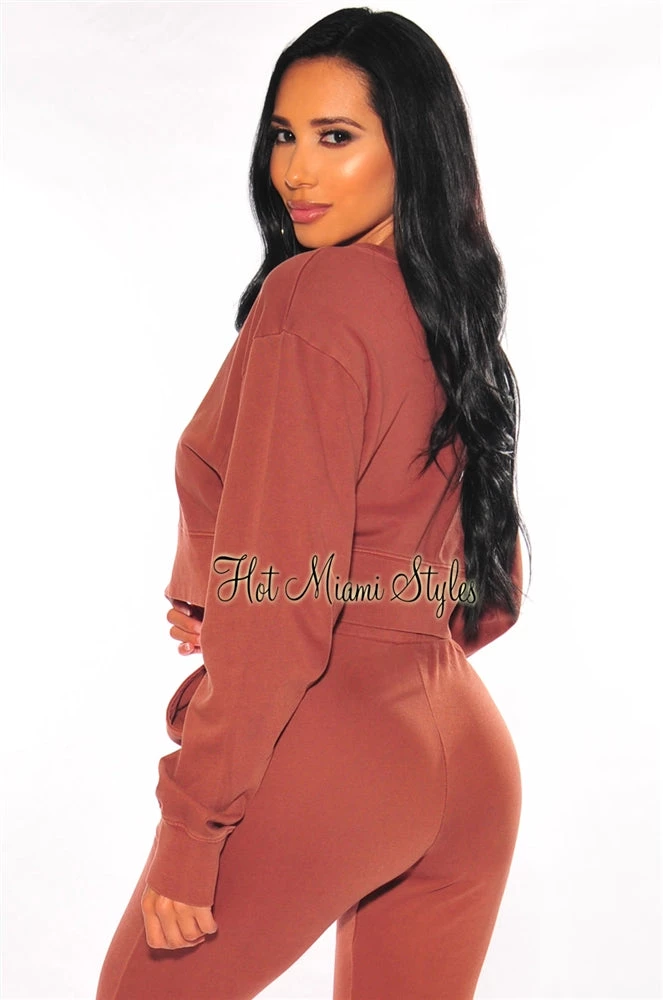 Lounge and beyond in this hazelnut sweatshirt. Featuring a cropped silhouette, long sleeves and ultra comfy fabric. Complete the look with matching joggers or pair with jeans for a chic look.
