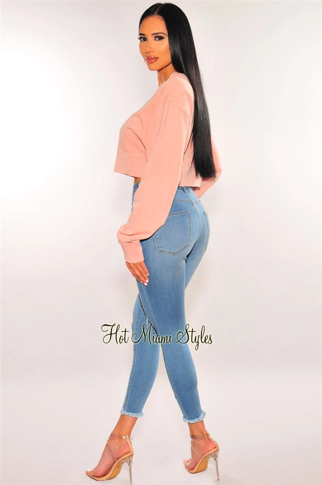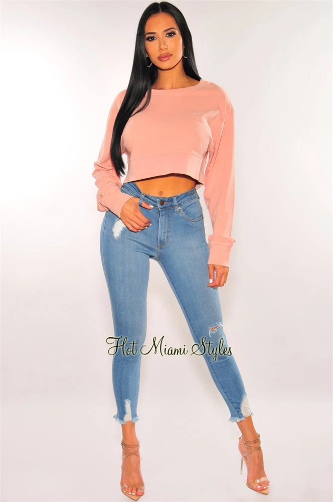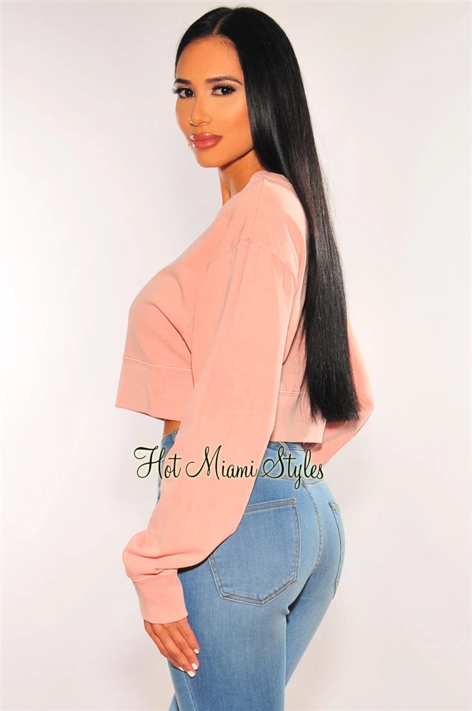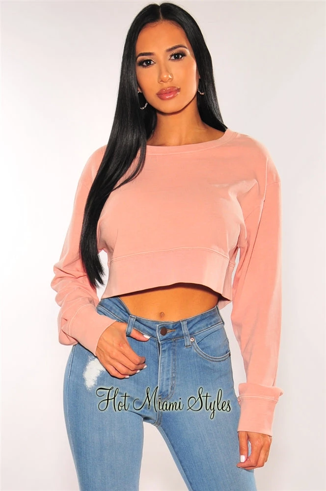 Lounge and beyond in this rose sweatshirt. Featuring a cropped