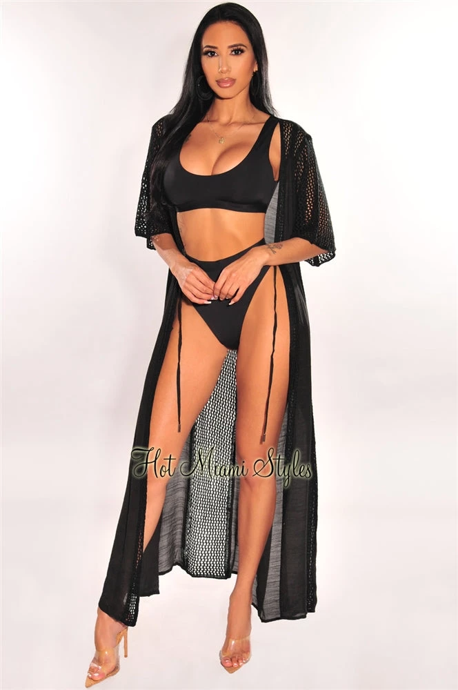 The perfect layering piece for all the swimwear looks, this tie up cover up is everything we are currently loving with a maxi length and a beautiful crochet detailed design.