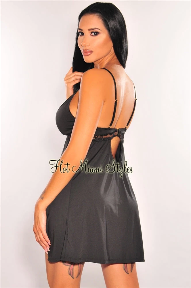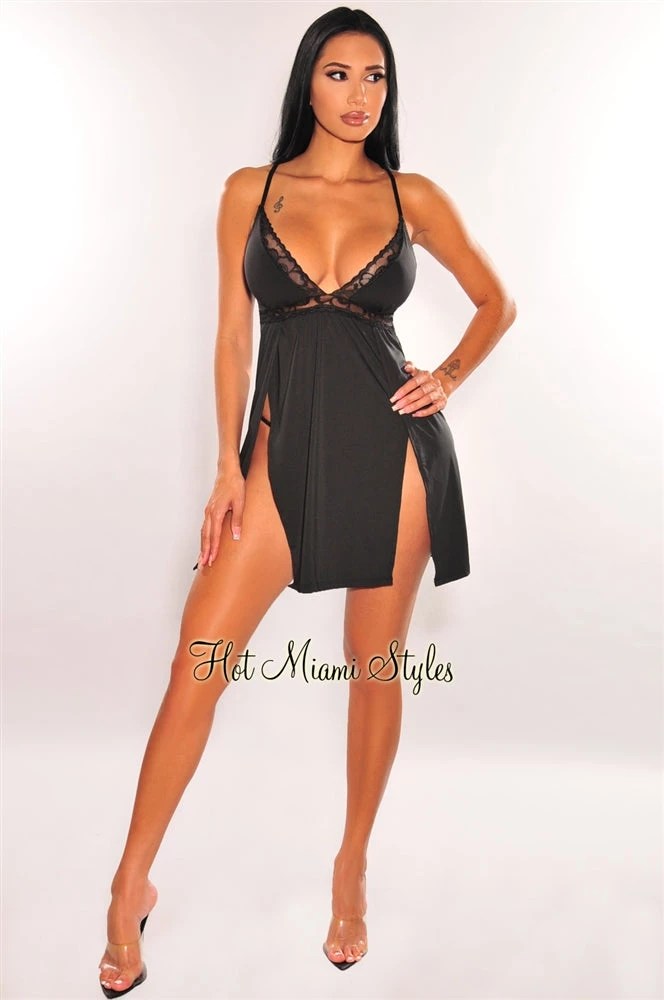 The perfect sexy yet classy babydoll lingerie set has arrived! Featuring a V neck and beautiful lace details, on soft and comfortable fabric with double slits on a mini dress silhouette.