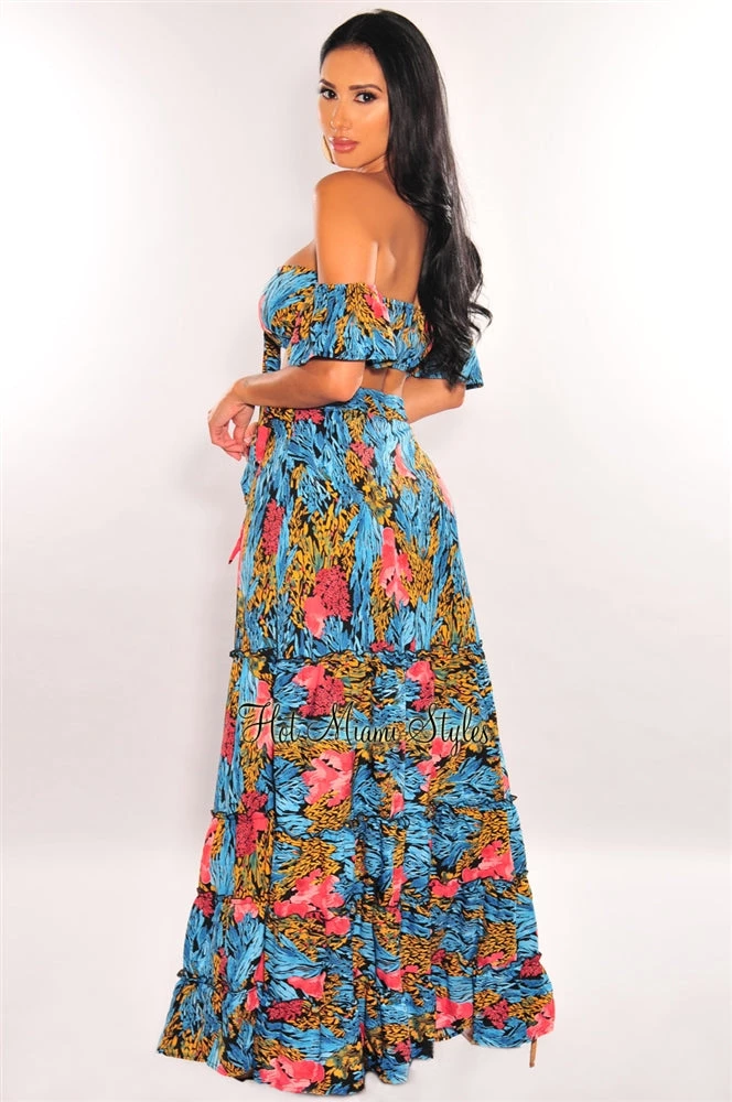 Vendor-unknown Just In Black Multi Color Print Tie Up Wrap Maxi Skirt Two Piece Set