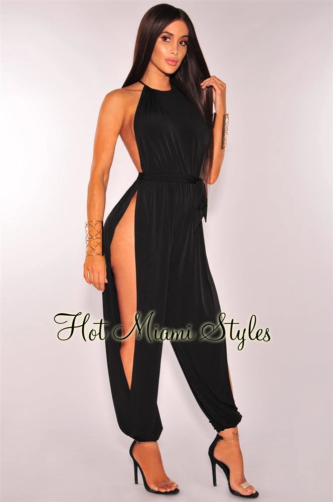 A total wow statement has arrived, this black slit leg harem jumpsuit is ready to conquer all hearts. It’s sexy slit leg silhouette gives your bod the ultimate allure to greet weekend adventures.