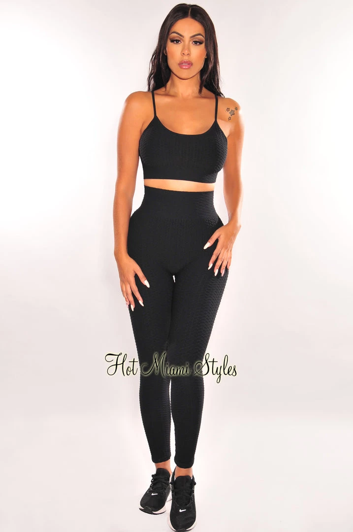 Vendor-unknown Just In HMS Fit: Black Textured Padded Butt Lifting Leggings Two Piece Set