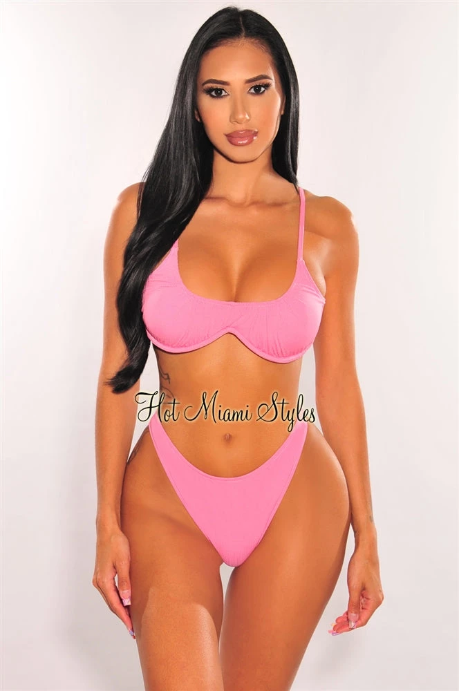 Complete your beach babe collection with our mega chic bikini. Featuring a ribbed bodice on a padded underwire bust and matching bottoms to complete the look.