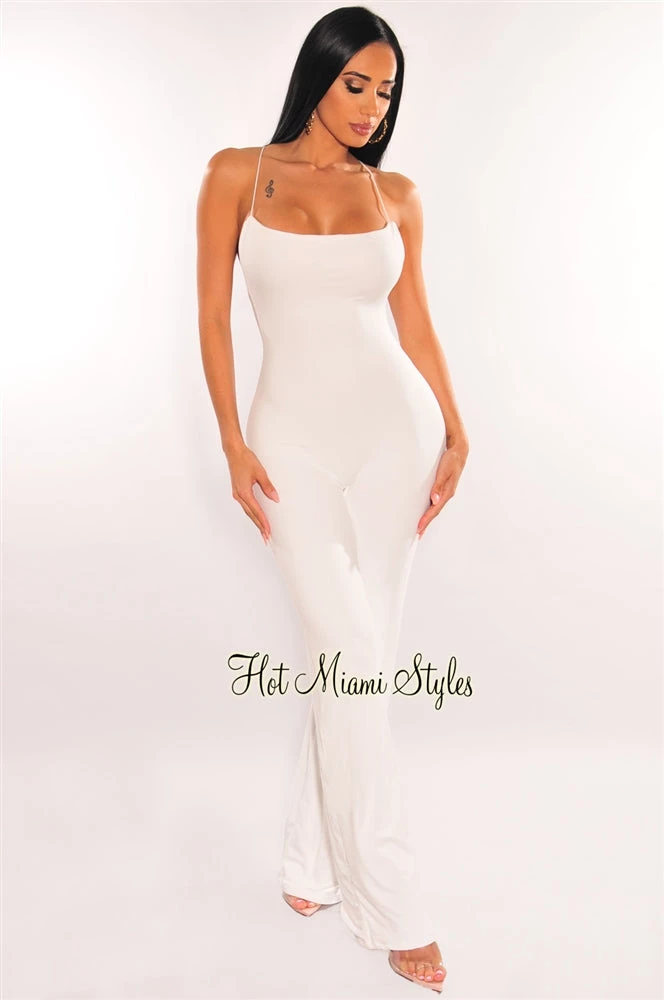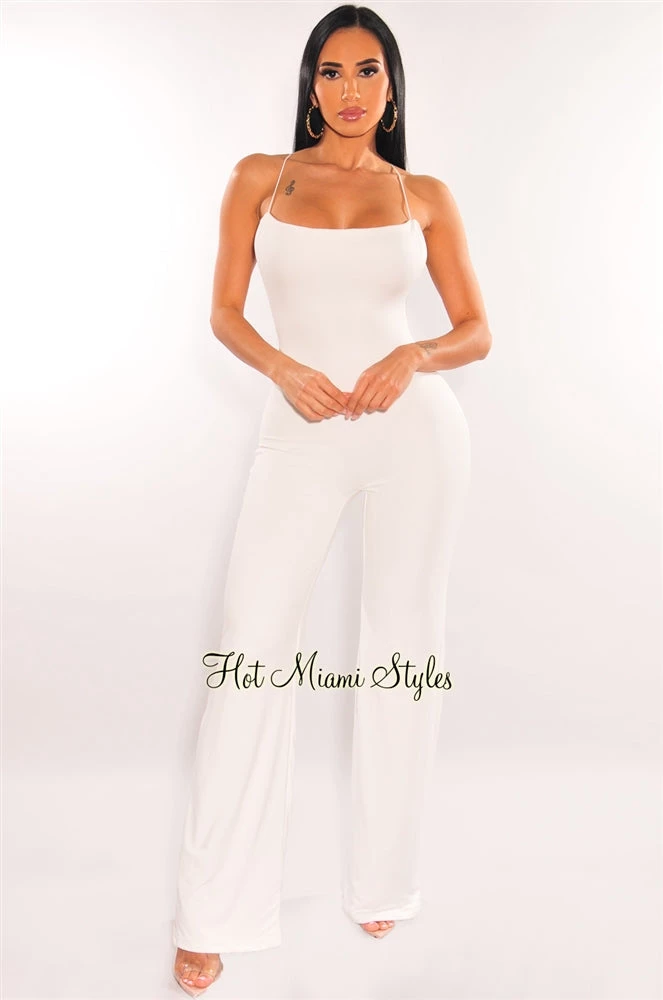 Amp up your jumpsuit collection with this must have. Made with a super soft double lined bodice, featuring a crisscross back with elastic straps on a stylish palazzo fit jumpsuit.