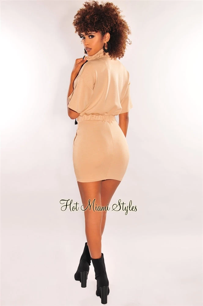 Vendor-unknown Nude Mock Neck Zipper Short Sleeves Dress Just In