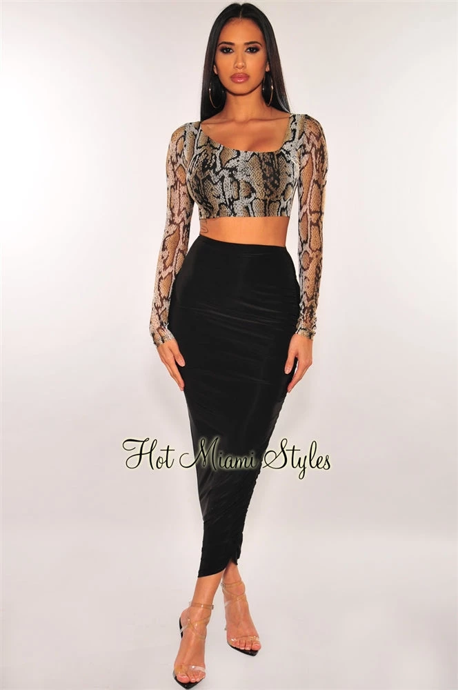 Channel major fierce vibes in our sexy snake print set. With a long sleeves designed top and a sexy ruched skirt.