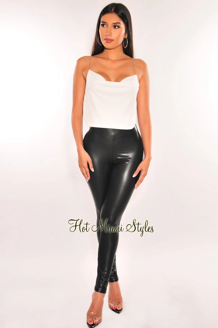 We are in love with this super sexy crop top. Featuring a sultry open back detailed with a silver chain on a cowl neck bandana style top.Â