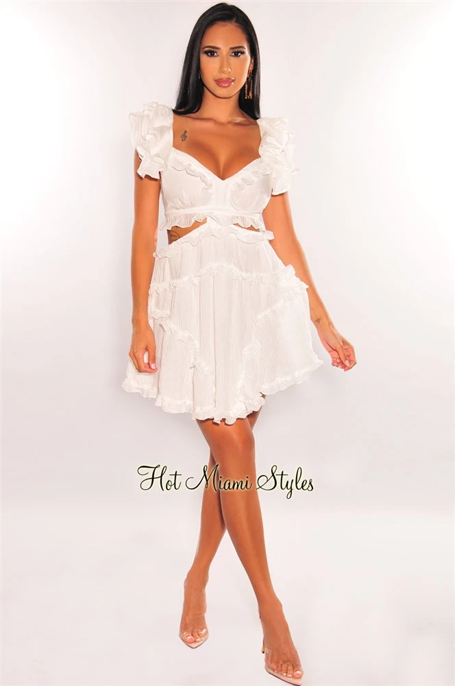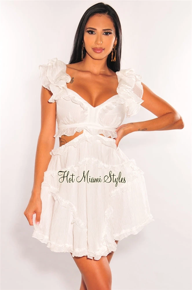 Yes babe, this is the perfect outfit you’re looking for! This cute baby doll dress is full of life with ruffle details and a sexy cut out. Featuring a lace up back and a gorgeous mini dress silhouette.