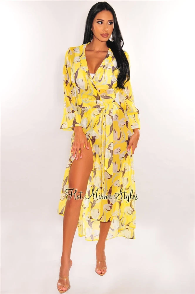 The perfect piece for your vacay collection. This floral print belted cover up is everything we are currently loving with a maxi length.
