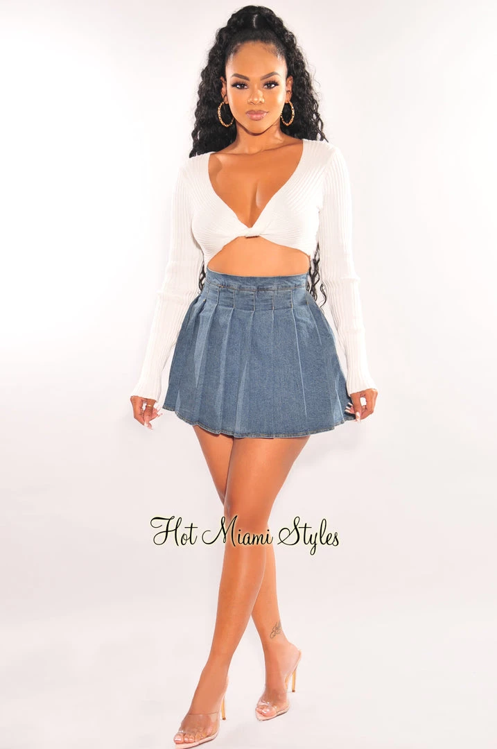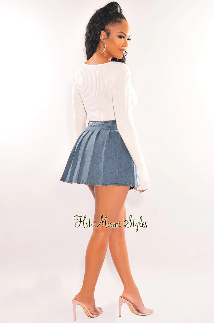 We’re obsessing over this denim tennis skort that goes with any and everything. Features a pleated design and a stretch for the perfect fit.