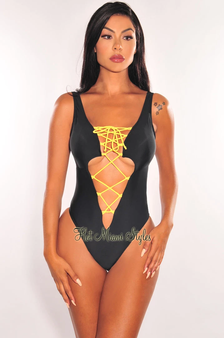 The lace up swimsuit you have been looking for. Made with padding for support, keyhole detail on a one piece silhouette.Â